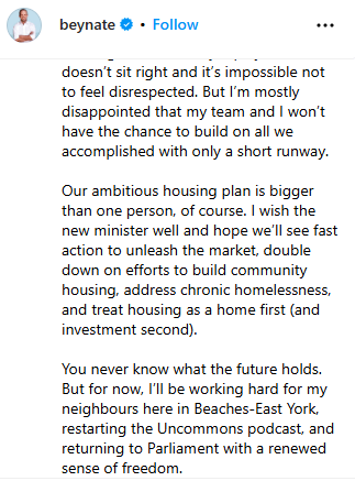 I guess Nate Erskine-Smith was Housing Minister for awhile, and expected to be Housing Minister again.